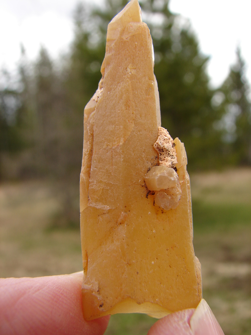 Himalayan Yellow Quartz aprox 14 grams x 53 mm HY-23 Nice Strange Rare Formation with a small penatrater and some other type of material growing on the outside